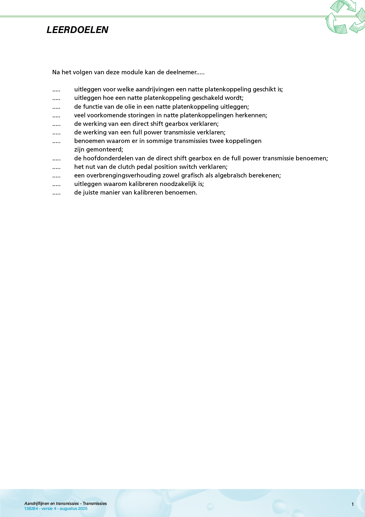 In het katern ‘Transmissies basis’ is hoofdzakelijk het mechanische gedeelte van een handgeschakelde