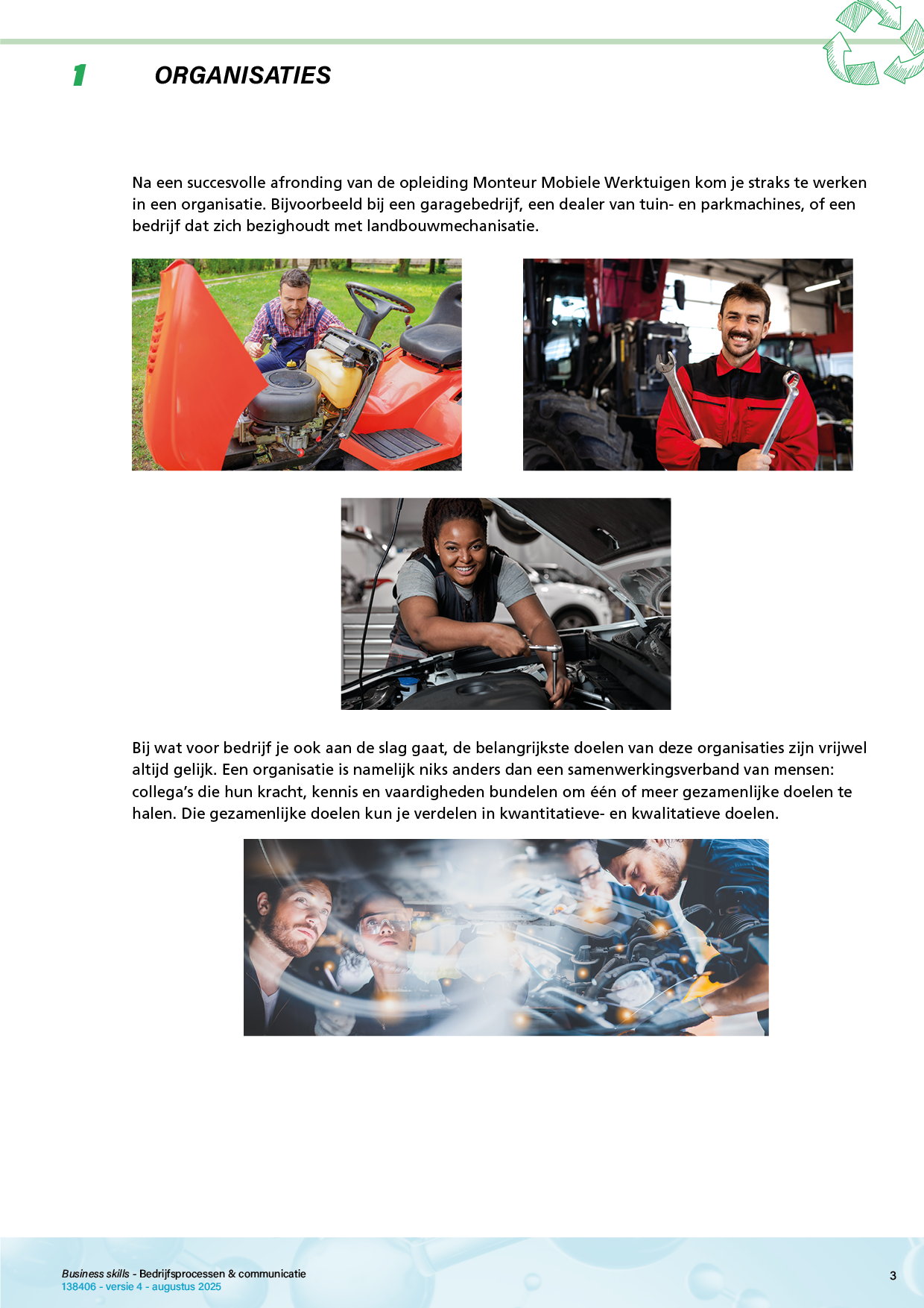 behalen. Bijvoorbeeld: het verkopen, onderhouden en repareren van mobiele werktuigen. Samen zorg