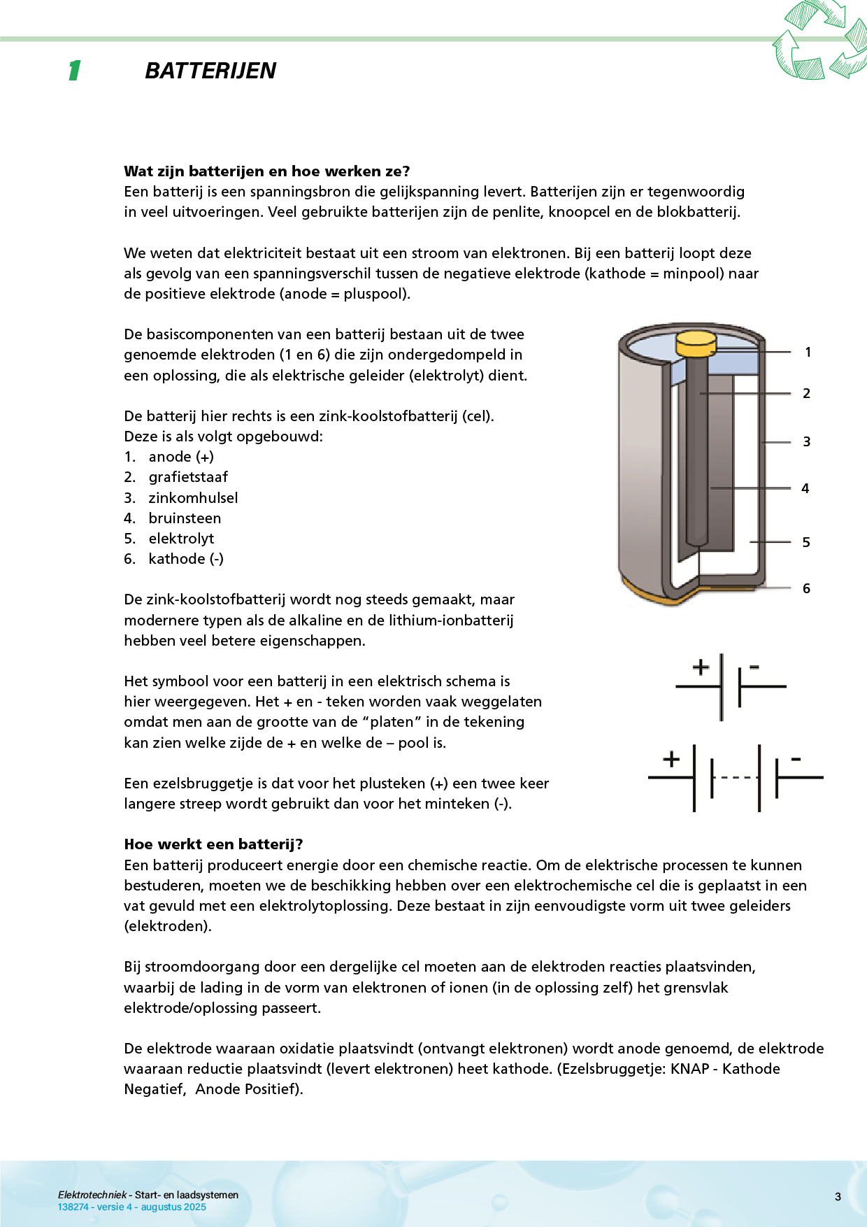 spanningsbronnen noemen, de praktische uitvoering daarvan in de vorm van batterijen en accu’s.