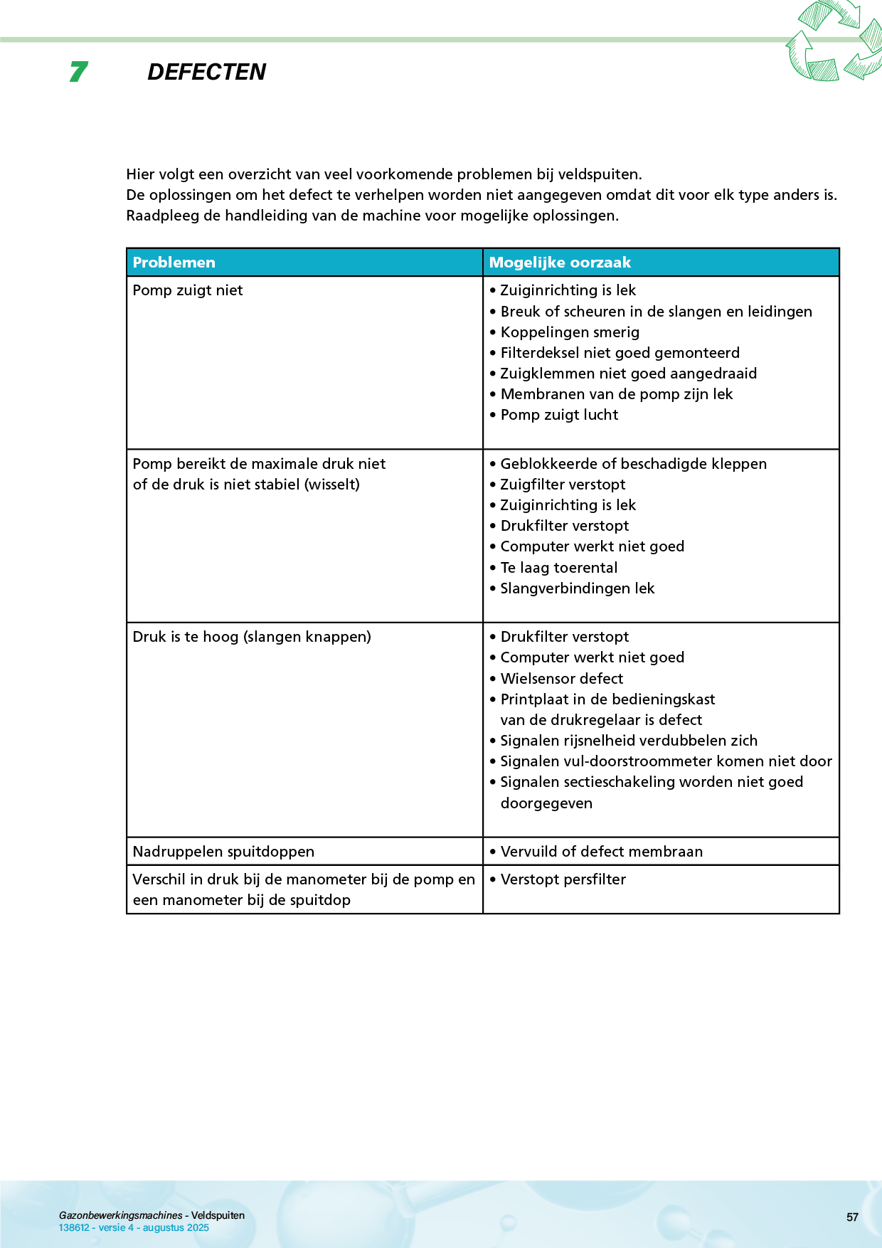 Tenslotte wordt het onderhoud van de veldspuit besproken.