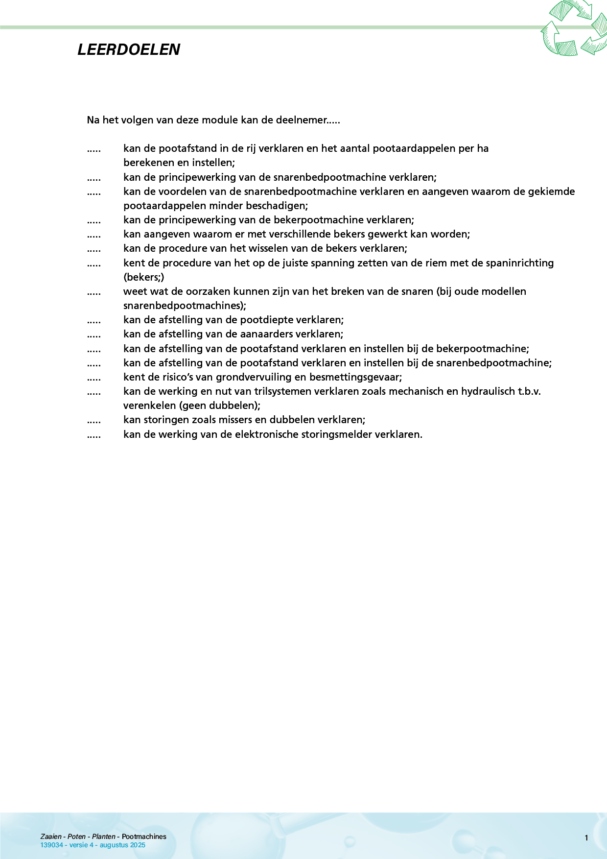 Voor de pootgoedteelt wordt begonnen met uitgangsstammen, het uitgangsmateriaal voor een