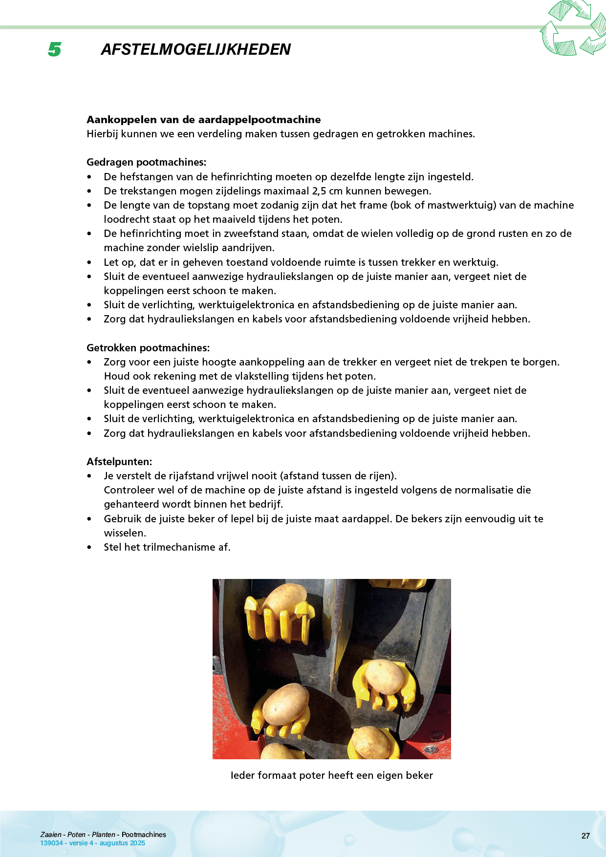 Bij pootgoed willen we graag een kleinere maat oogsten, een kleinere maat is namelijk makkelijker bij het uitpoten. Zo kennen we maat 28-35, 35-45, 45-55 en 55. Dit is de maat van de aardappel in mm. Met een blokmaat kun je de maat van de aardappel bepalen.