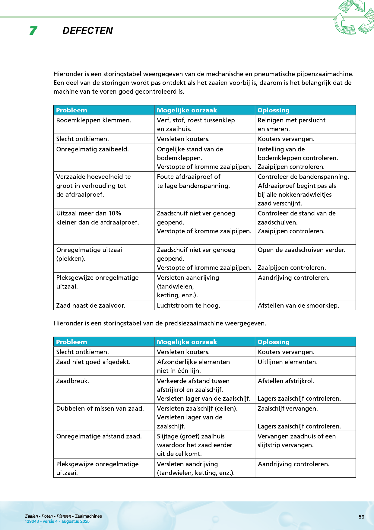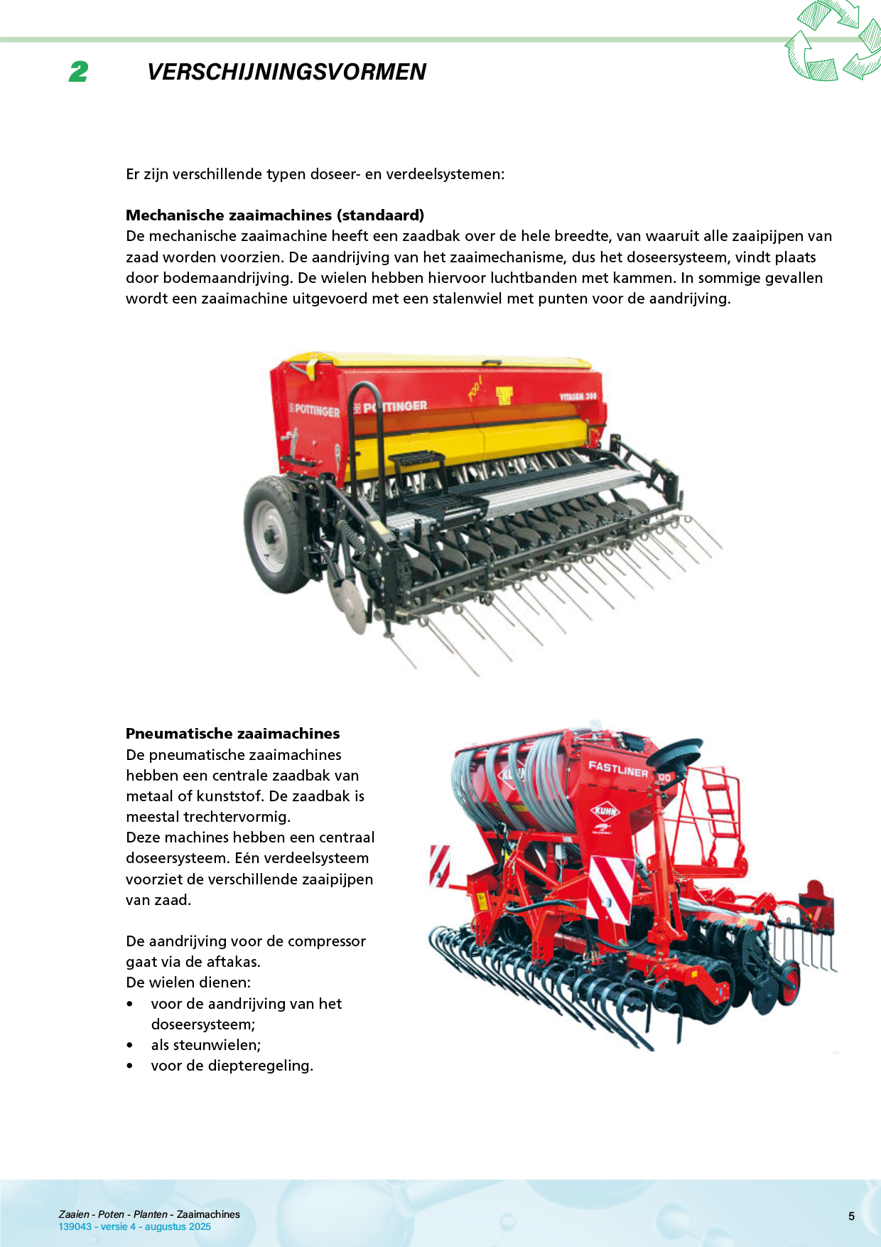 Door de uitvinding van de zaaimachine, tevens de eerste landbouwmachine met bewegende delen, werden de zaden direct in een baan gedeponeerd. Deze baan werd door een ploeg voorop de machine vrij gelegd, en door een eg, achterop de machine, weer bedekt.