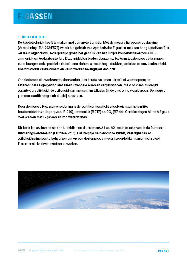 Dit lesboek biedt tezamen met het lesboek koudemiddelonafhankelijke kennis de benodigde kennis ter voorbereiding op het A1/A2 examen.