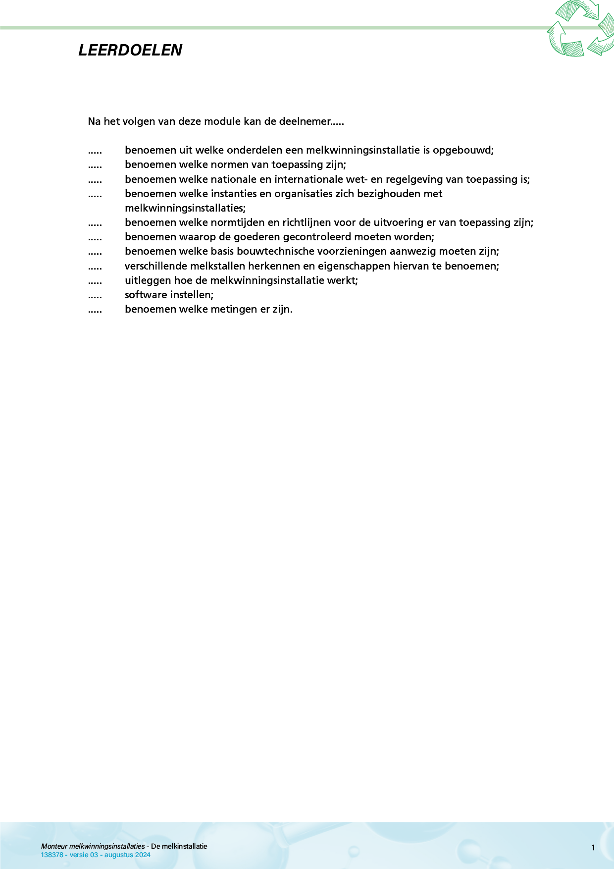 Monteur Melkwinningsinstallaties De melkinstallatie / Werking / Meet- en adviesrapport (A2)