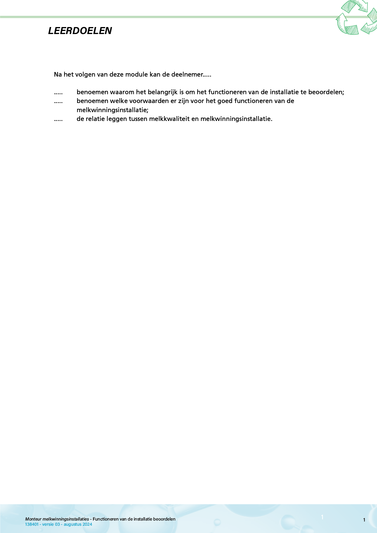 Monteur Melkwinningsinstallaties Functioneren van de installatie beoordelen (B2)