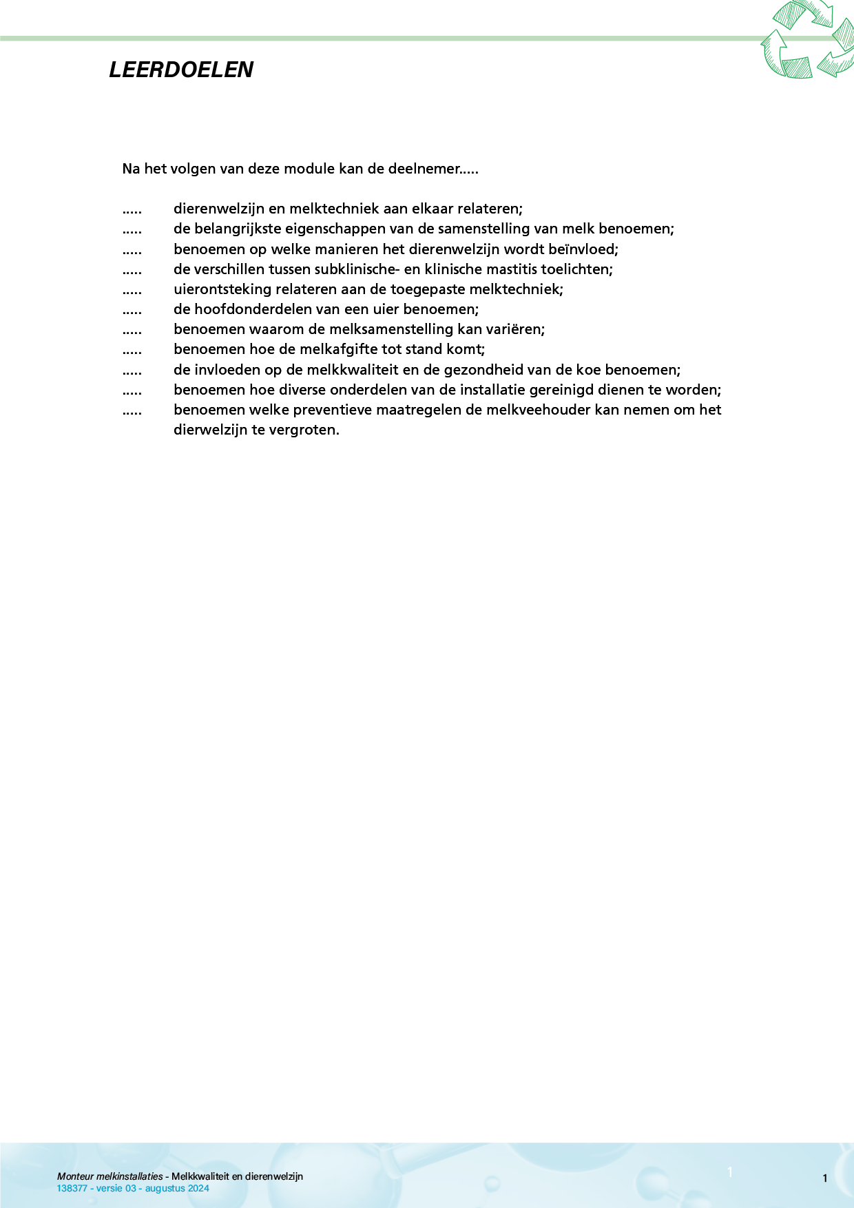 Monteur Melkwinningsinstallaties Melkkwaliteit en dierenwelzijn (B1)