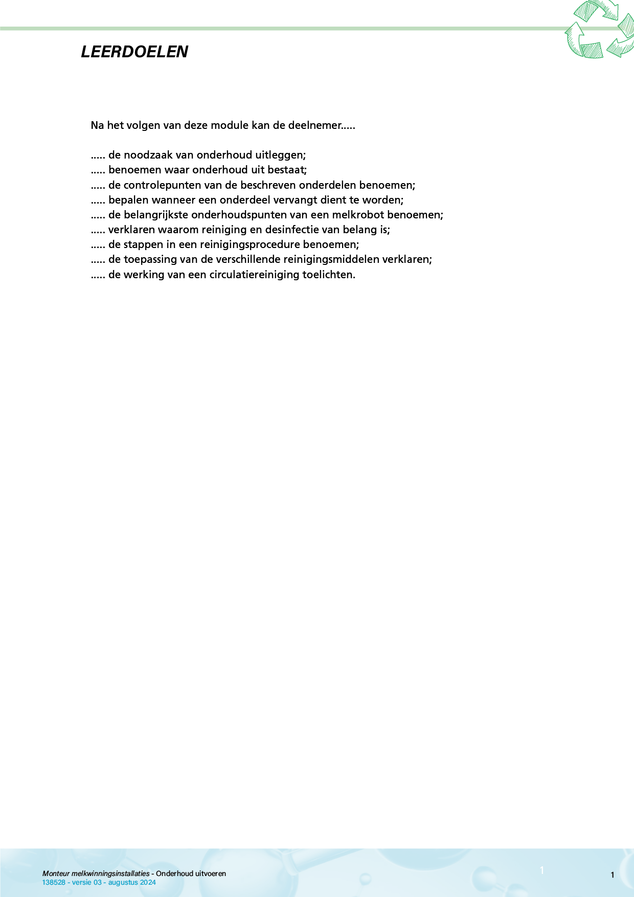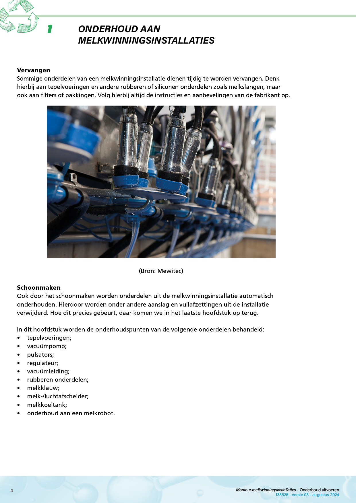 Home Winkel Monteur Melkwinningsinstallaties Onderhoud uitvoeren (B3)