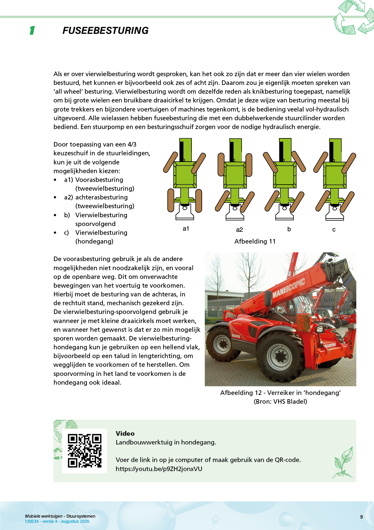 meer assen kunt besturen. Veel mobiele werktuigen worden door middel van de voorwielen bestuurd, maar er zijn ook zelfrijdende mobiele werktuigen die via de achterwielen bestuurd worden.