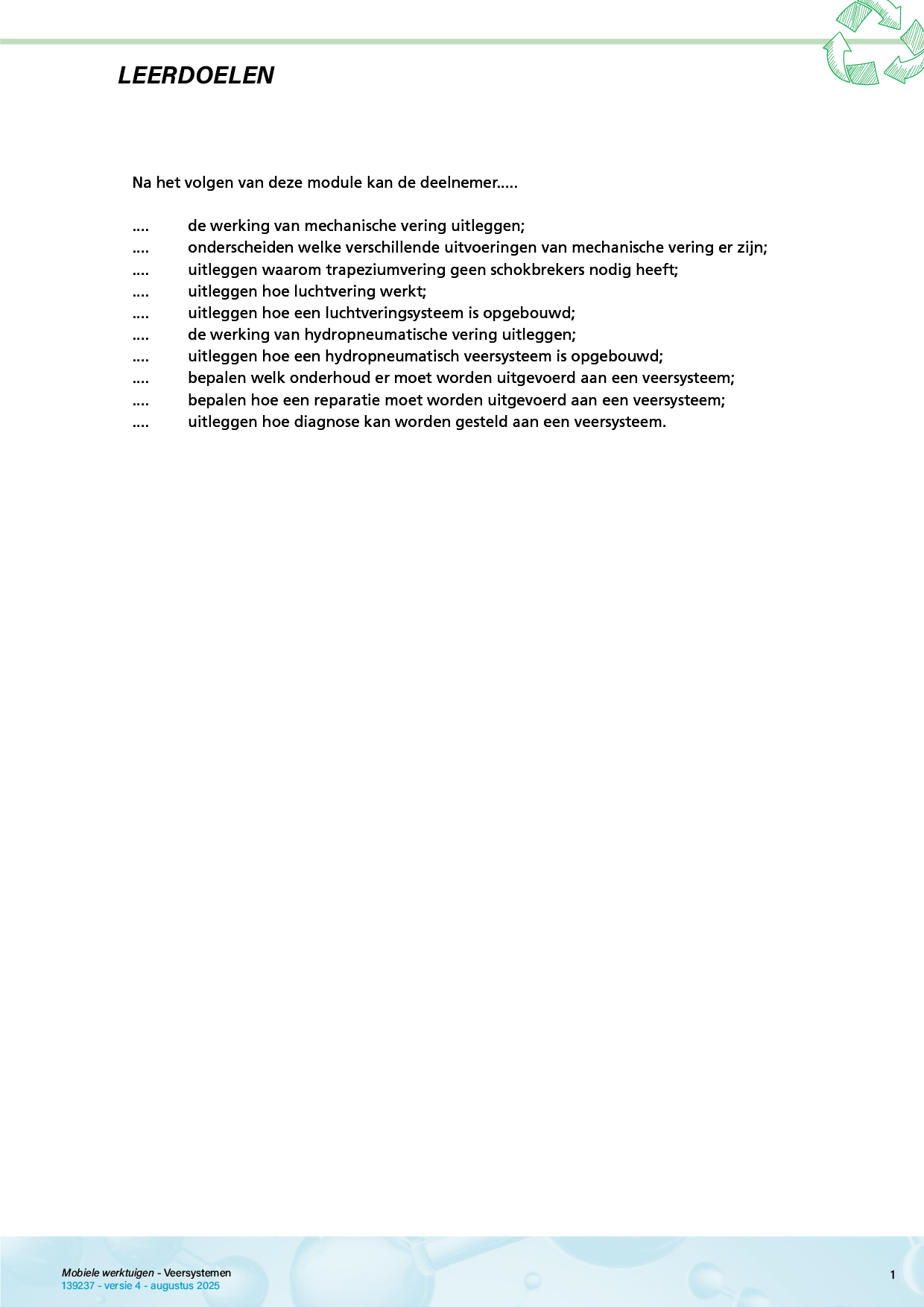 In dit katern bespreken we de ontwikkeling, werking en verschillende vormen van vering van mobiele werktuigen zoals trekkers, cabines en getrokken materieel.