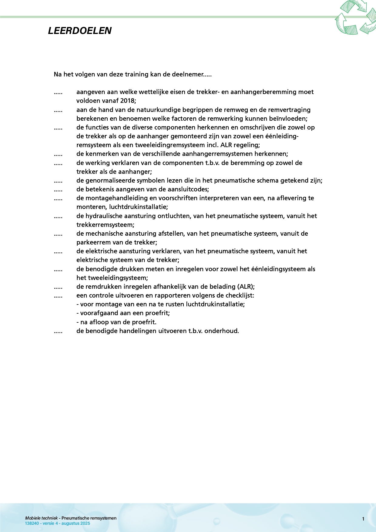 Verder leer je het remsysteem zo in te regelen dat de remprestaties van trekker en aanhanger optimaal zijn.