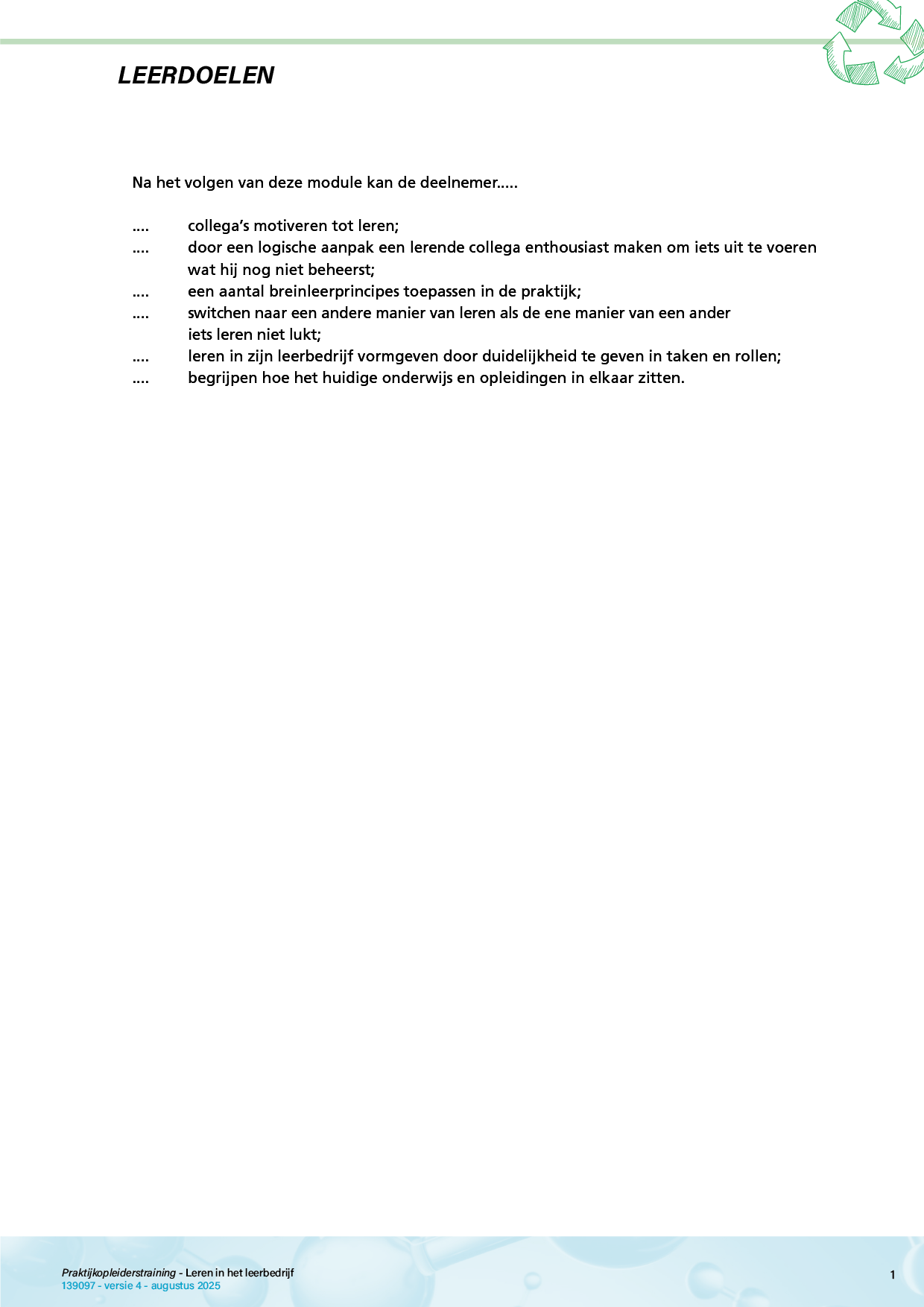 Dit katern ‘Leren in het leerbedrijf’ is een onderdeel van de praktijkopleiderstraining.