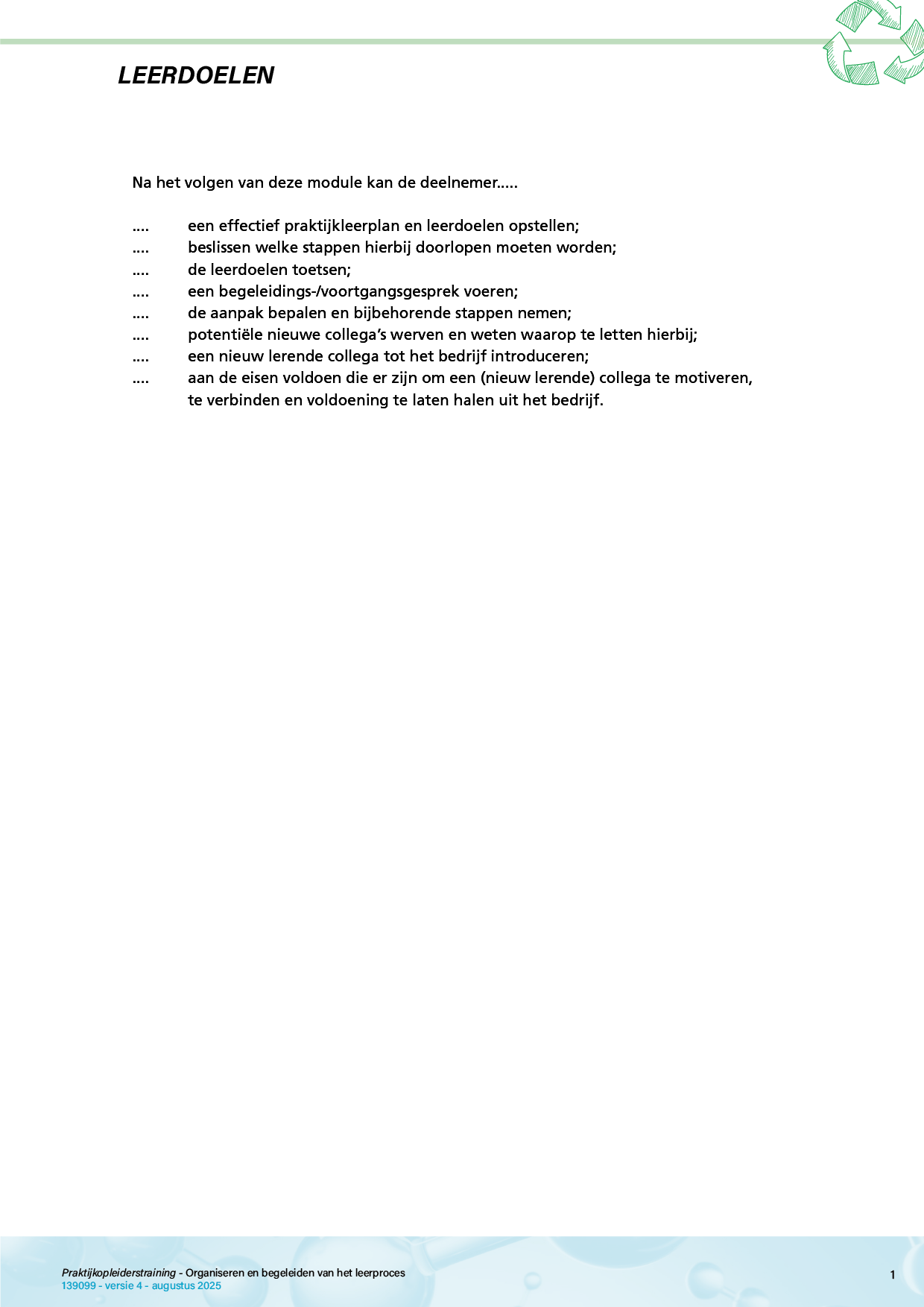 Dit katern ‘Organiseren en begeleiden van het leerproces’ is een onderdeel van de praktijkopleiderstraining.