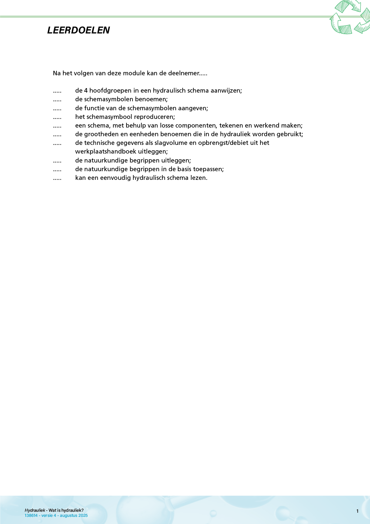 Dit katern is op verzoek van en in nauwe samenwerking met scholen en bedrijven samengesteld. Dit katern gaat de lezer inzicht te geven in de wereld van leidingwerk, slangen, koppelingen en onderdelen die in de hydrauliek worden gebruikt. Kennis hiervan is noodzakelijk om in de praktijk op een verantwoorde en veilige wijze met deze producten om te gaan.
