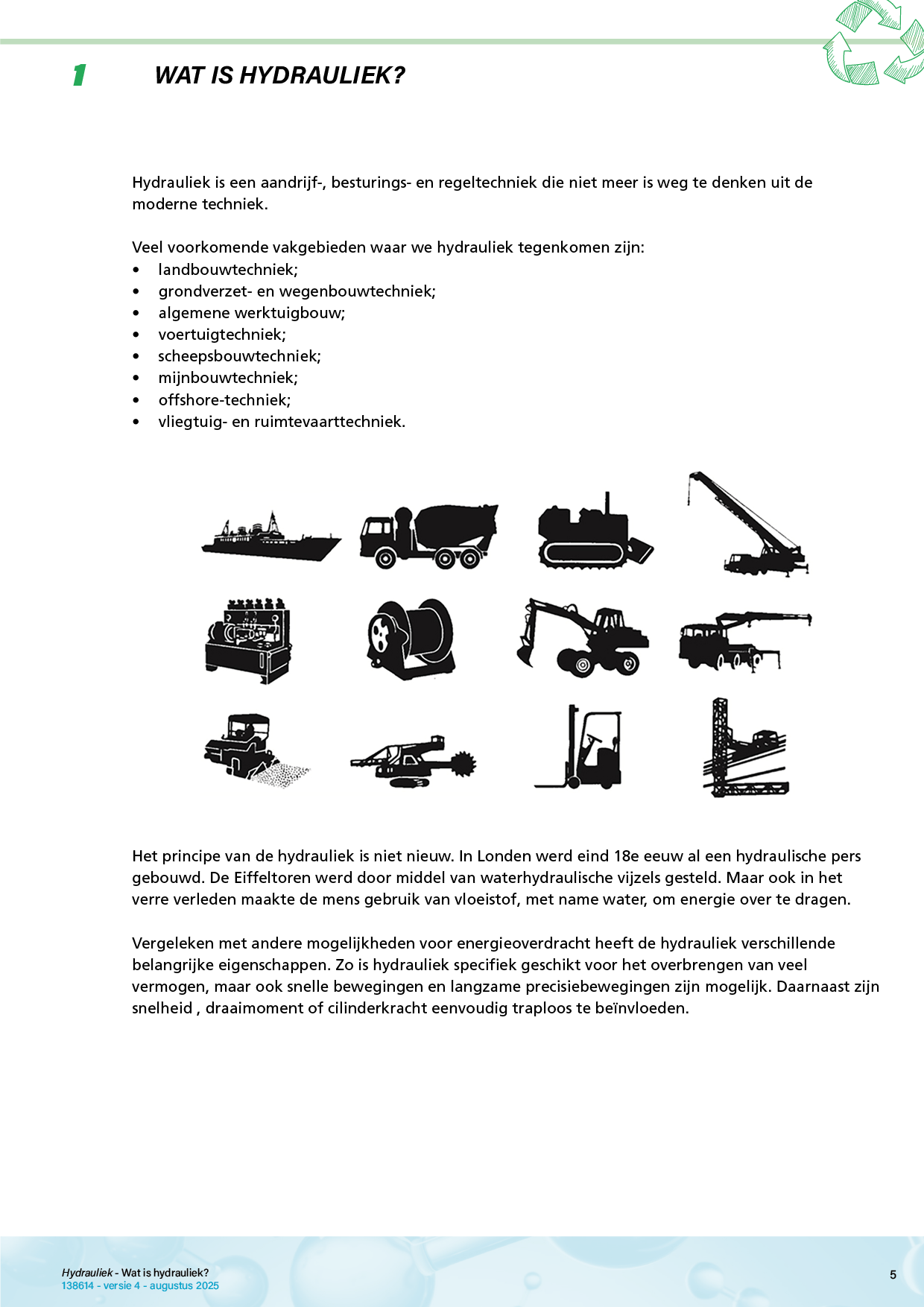 Voor monteurs en technici die zich bezig houden met mobiele werktuigen bestaat een grote behoefte zich te verdiepen en inzicht te krijgen in het boeiende vak van de hydrauliek.
